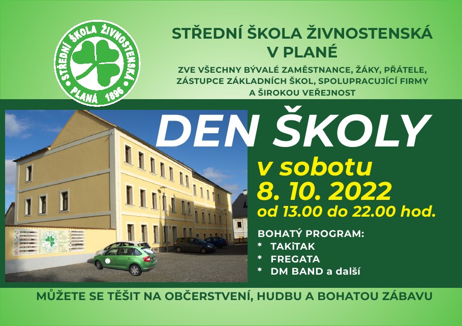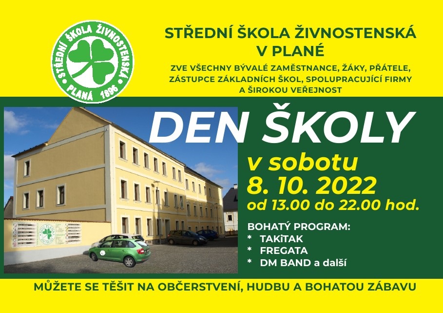 Zveme všechny bývalé zaměstnance, žáky, přátele, zástupce základních škol, spolupracující firmy a širokou veřejnost v sobotu 8. 10. 2022 od 13.00 do 22.00 hod. na DEN ŠKOLY.